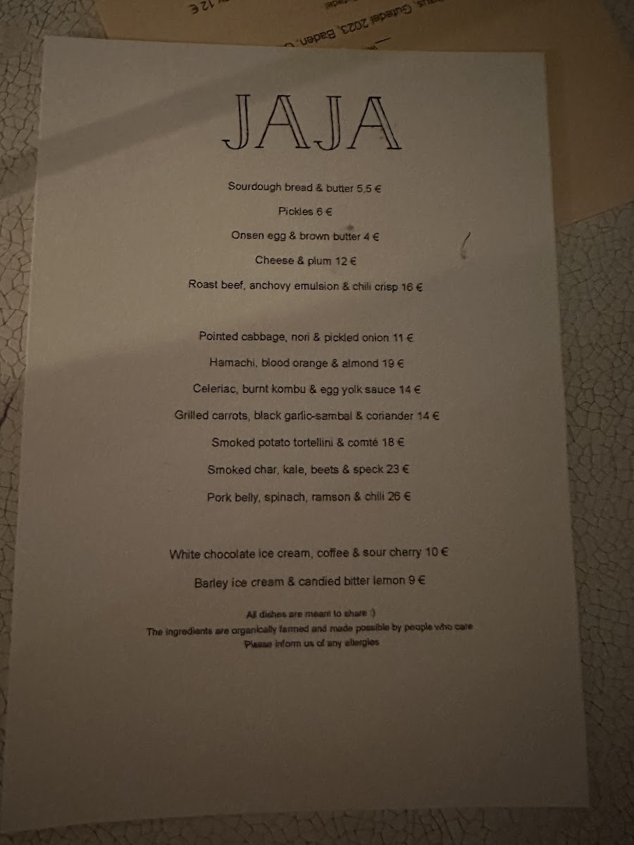 Overall, jaja - Weichselstraße 7 is a dining experience well worth trying. It promises to impress with its creative takes on seasonal ingredients, warm atmosphere, and engaging staff. Whether you’re celebrating a special occasion or simply enjoying a night out, jaja may just become your new favorite culinary destination in Berlin. Don't forget to indulge in the fantastic bread and butter—it's the perfect start to your dining adventure!