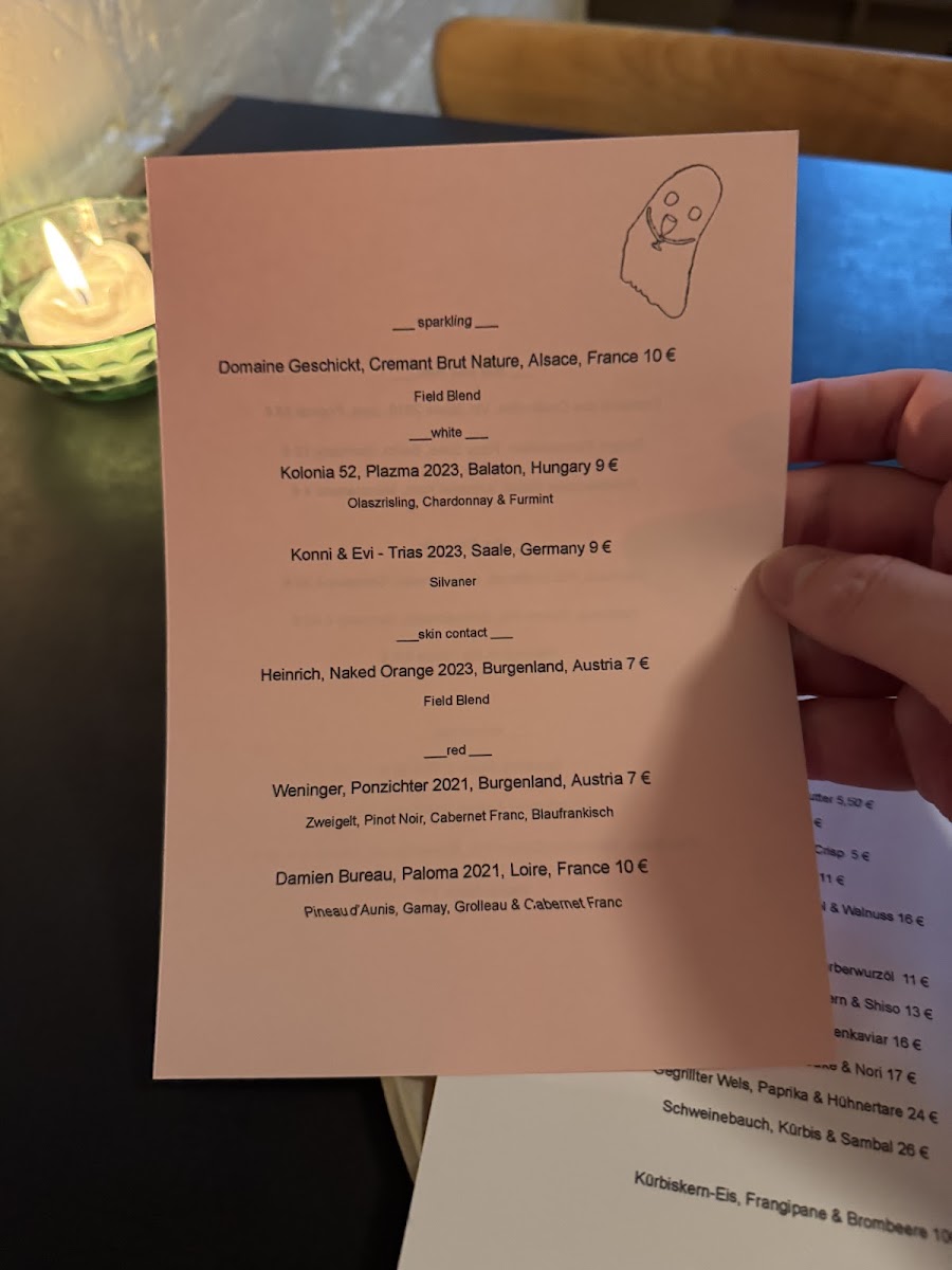“ One of my by far favourite restaurant experiences in the wide variety of „sharing plates and natural wine“-places in Berlin! The food was innovative, outstanding and good to share, the wine very well picked and the atmosphere was relaxed. ”
